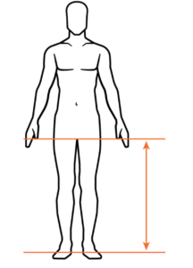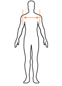 Medidas corporales / Ancho de hombros Ubica los extremos de ambos acromion, ubicados en la punta de los hombros, hacia la parte posterior. Pide a tu ayudante que mida tu espalda desde la punta de un acromion hasta el otro.